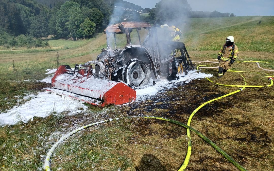 Nachmittags wurden die Feuerwehren Schüller, Jünkerath und Stadtkyll von der Leitstelle Trier zu einem Fahrzeugbrand in die Wegscheide nach Schüller alarmiert. Dort brannte ein Traktor auf einer Wiese. Wir rückten mit dem TLF 3000, HLF 10 und dem MZF1 zur Einsatzstelle aus. An der Einsatzstelle stand ein Traktor auf einer Wiese im Vollbrand. Gemeinsam mit der Feuerwehr Stadtkyll wurde der Brand unter Atemschutz zunächst mit Wasser, später mit Schaum gelöscht. Durch die Feuerwehr aus Schüller wurde die Wasserversorgung der Tanklöschfahrzeuge vom nächstgelegenen Hydrant sichergestellt. Nach etwa einer Stunde konnten wir die Einsatzstelle wieder verlassen. Ebenfalls im Einsatz war der RTW Jünkerath und die Polizei Prüm.